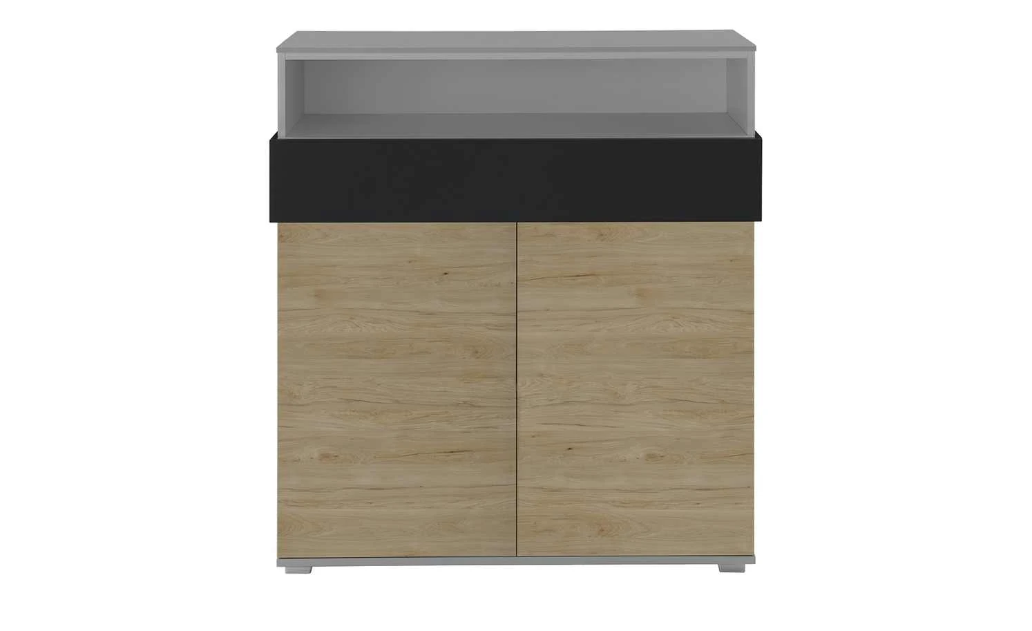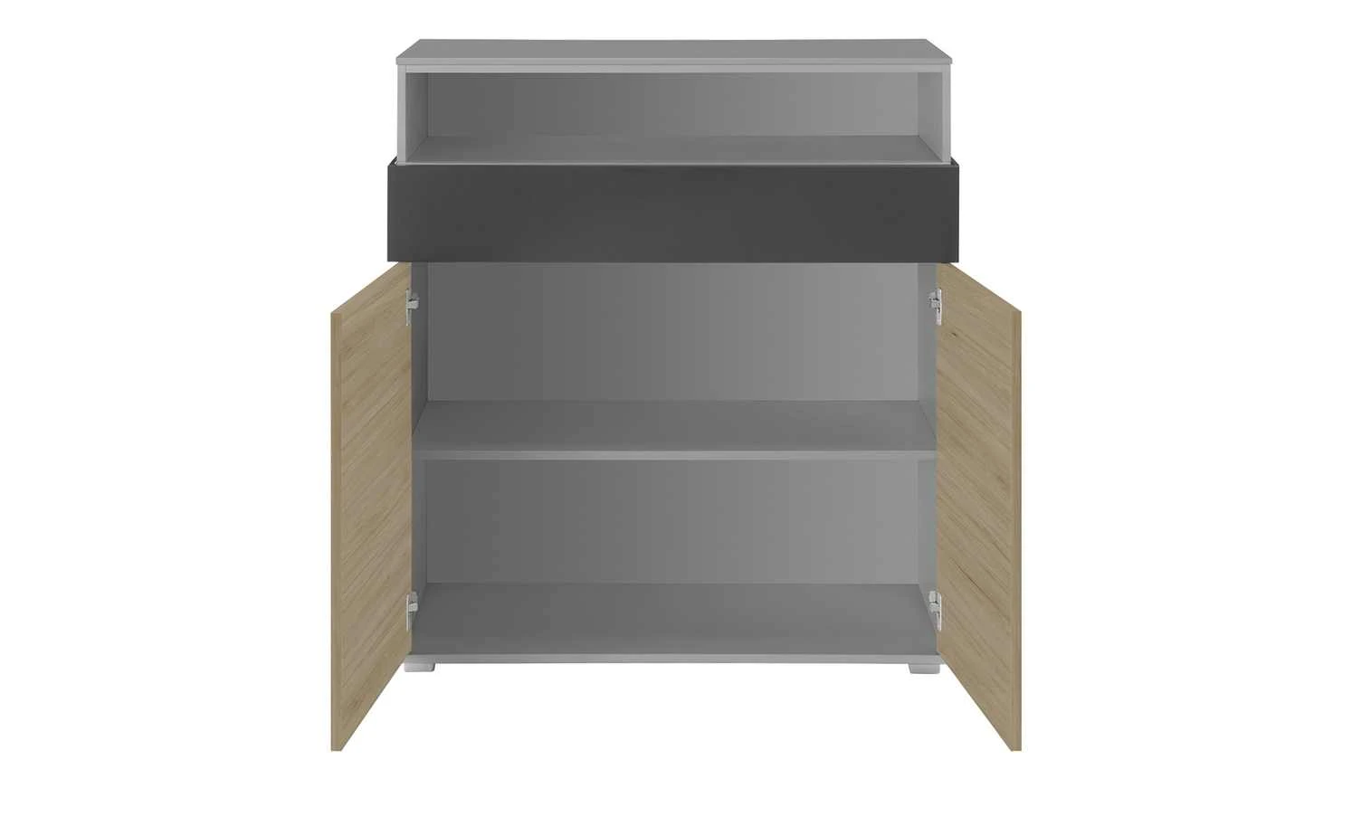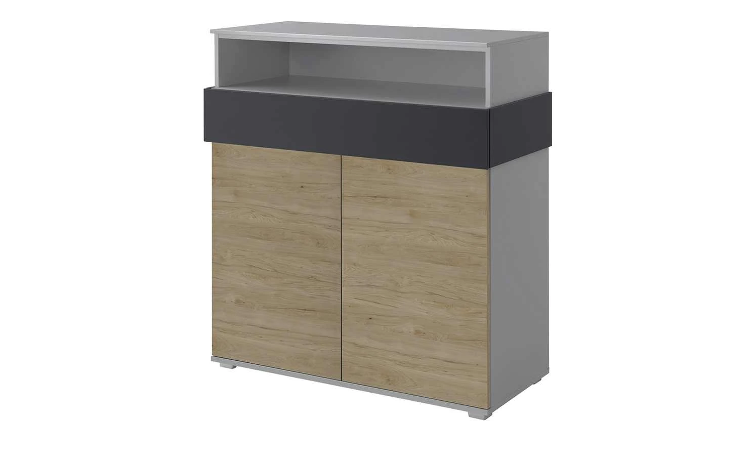 Highboard 2-türig Holly | Mittelgrau / Hickory (Nachbildung) / Anthrazit
