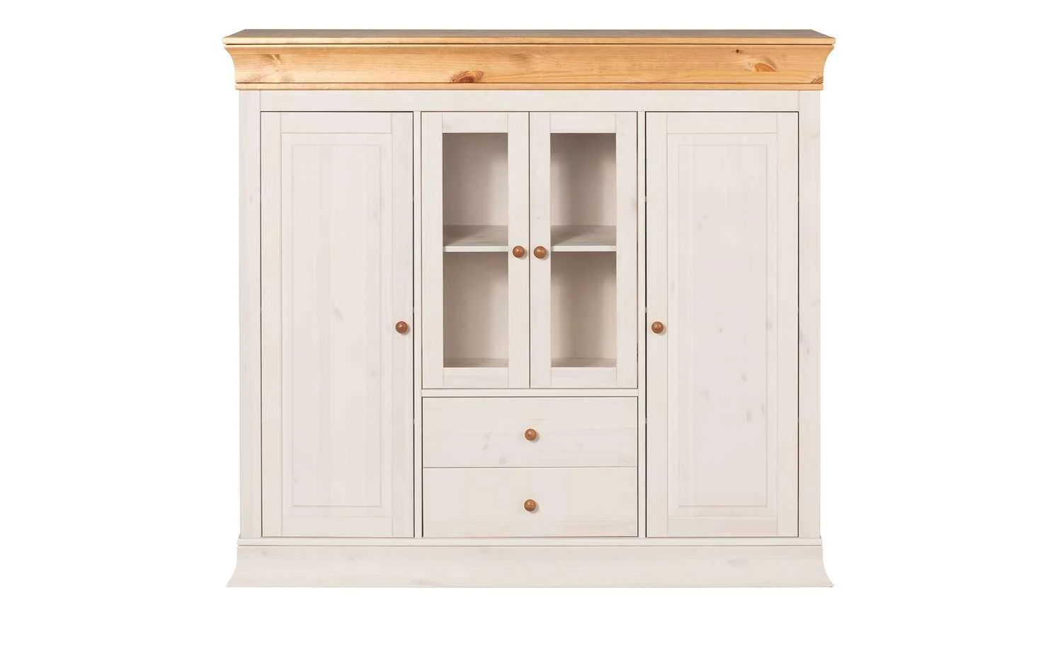 Highboard Bornholm |  Kiefer Weiß / Kiefer antikfarben