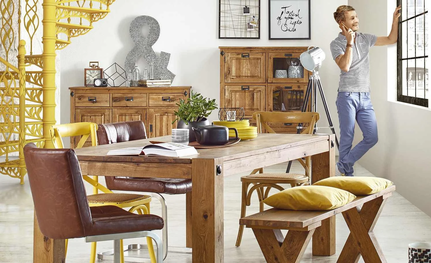 Der dunkle Holzton, die Eisenbeschläge und Verzierungen prägen den Vintage- und Kolonial-Stil des Highboards Freddy. Freddy ist teilmassiv. Das bedeutet, dass die Fronten, der Rahmen und die Abdeckplatte aus Eichenmassivholz sind. Der Korpus und die Böden sind hochwertig furniert. Um den einheitlichen Look zu erhalten, wurde auch dort Eichenholz genutzt. Zum Schutz des Holzes wurde es geölt. Gleichzeit ist dadurch ein ansprechender Antik-Look entstanden. In den beiden Vitrinen-Fächern mit Glastür können Sie edles Geschirr aufbewahren. Drei weitere Fächer und zwei Schübe bieten weitere Staumöglichkeiten.