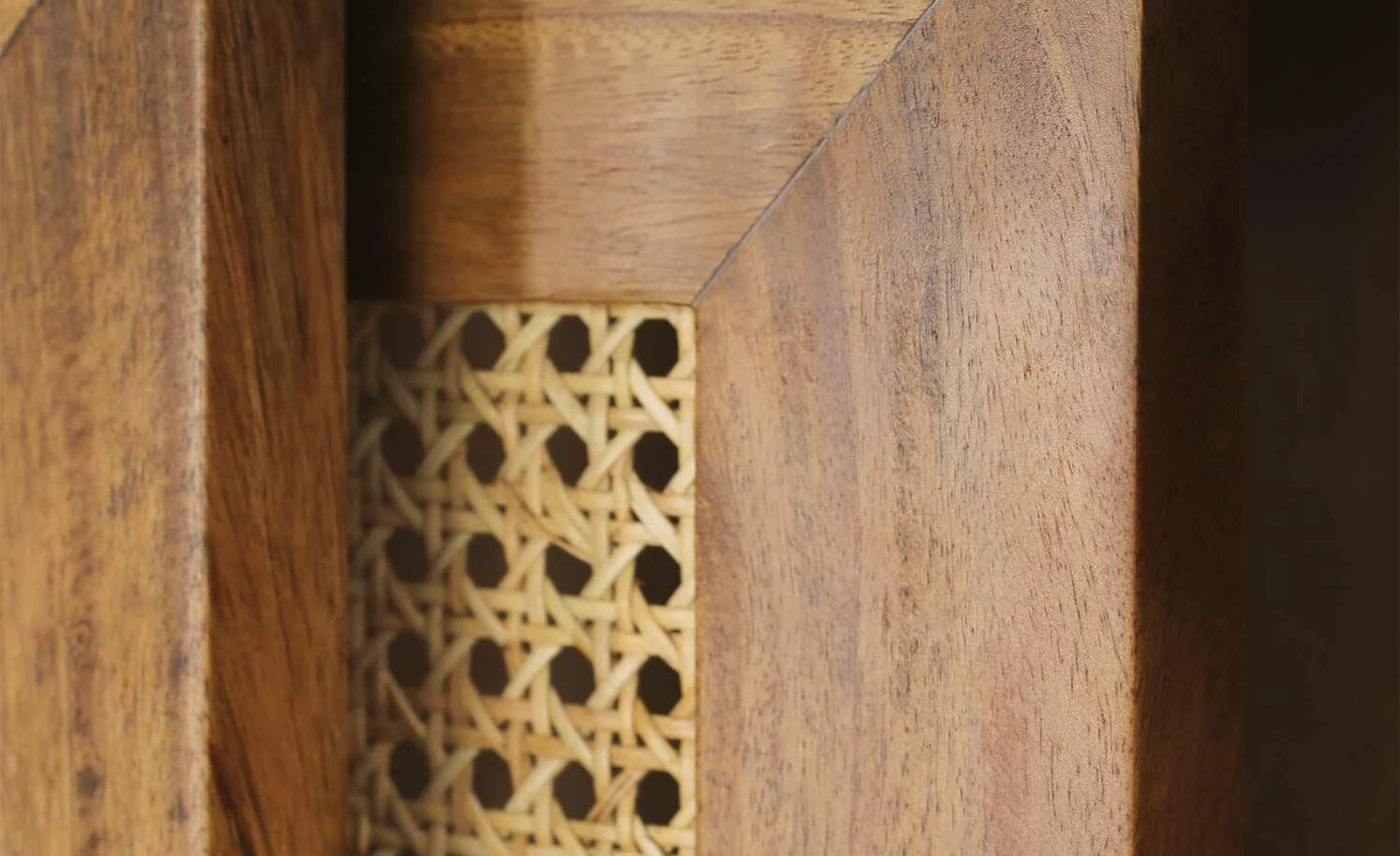 Die Serie Tweed Me entführt Sie in längst vergangene Zeiten und bringt Wiener Eleganz in Ihre vier Wände. So auch das Highboard aus Mango-Massivholz, welches für den Korpus und die Füße genutzt wurde. Farblicher Kontrast zu dem schön gemaserten Holz sind die beiden Schrankfronten. Diese wurden aus natürlichem Rattan zu einem edlen Achteck-Muster geflochten, welches auch als Wiener Geflecht bekannt ist. Die vier konischen, schräg zulaufenden Massivholzfüße runden das Gesamterscheinungsbild gekonnt ab.