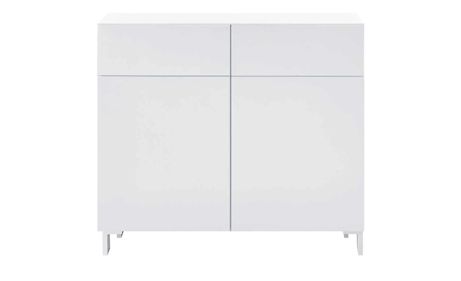 Fans reduzierter Designs werden die Kommode Konstanz lieben. Das klare Formkonzept spricht für sich. Selbst auf Griffe ist verzichtet worden. Stattdessen öffnen die Schubladen und Türen durch einen leichten Druck auf ihre Vorderseite – auch Push-to-Open genannt. Passend zur minimalistischen Linienführung ist auch die Farbe gewählt: schönes Weiß mit einem matten Finish. Konstanz verfügt über zwei Schubladen und vier Fächer hinter den beiden Türen. Die beiden Einlegeböden können Sie in der Höhe verstellen, um die Größe der Fächer zu variieren.