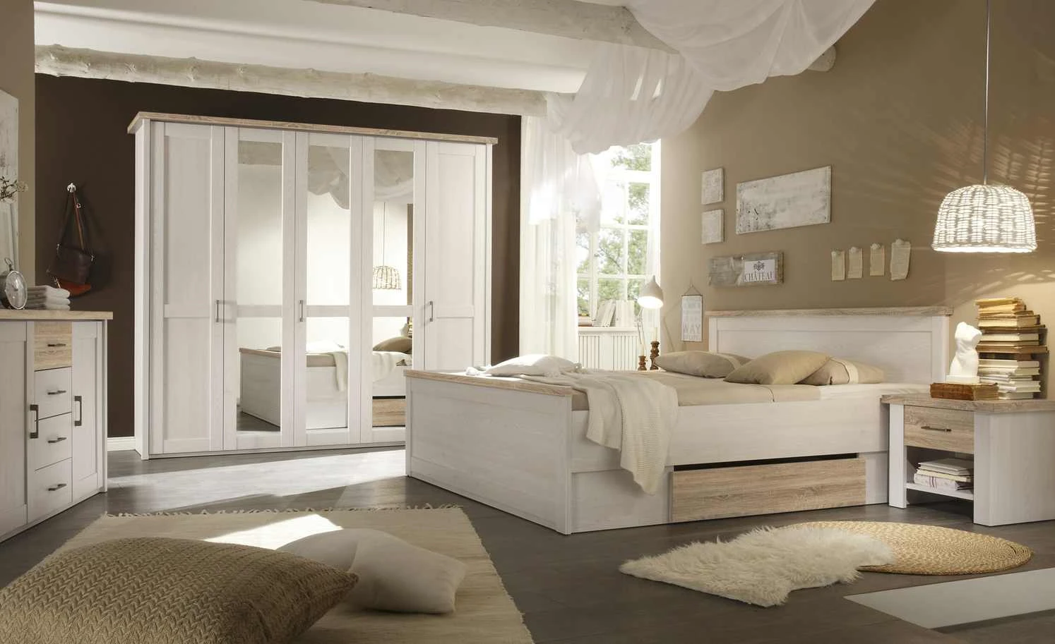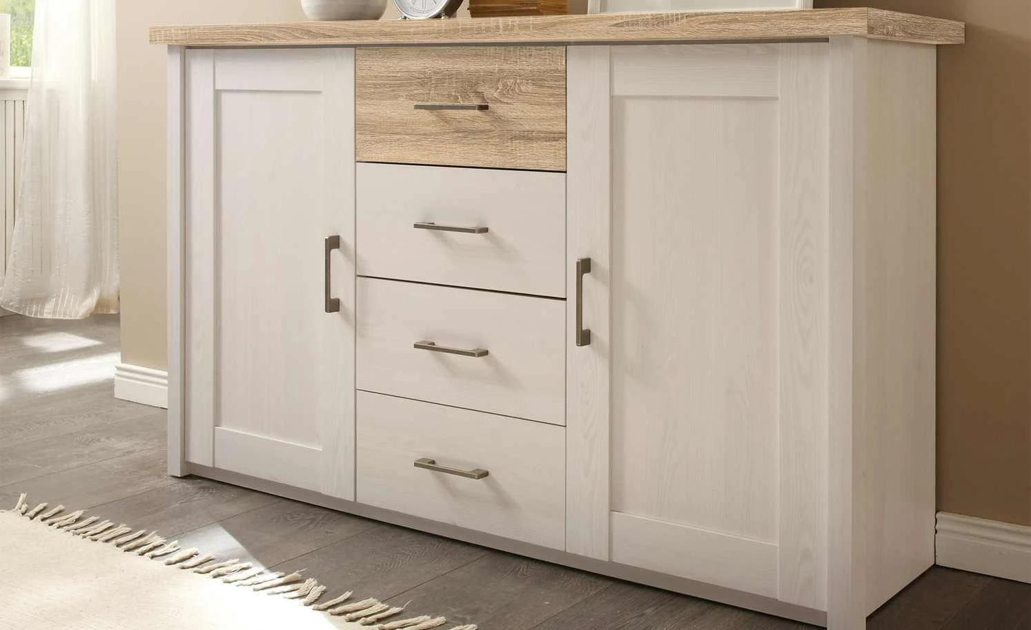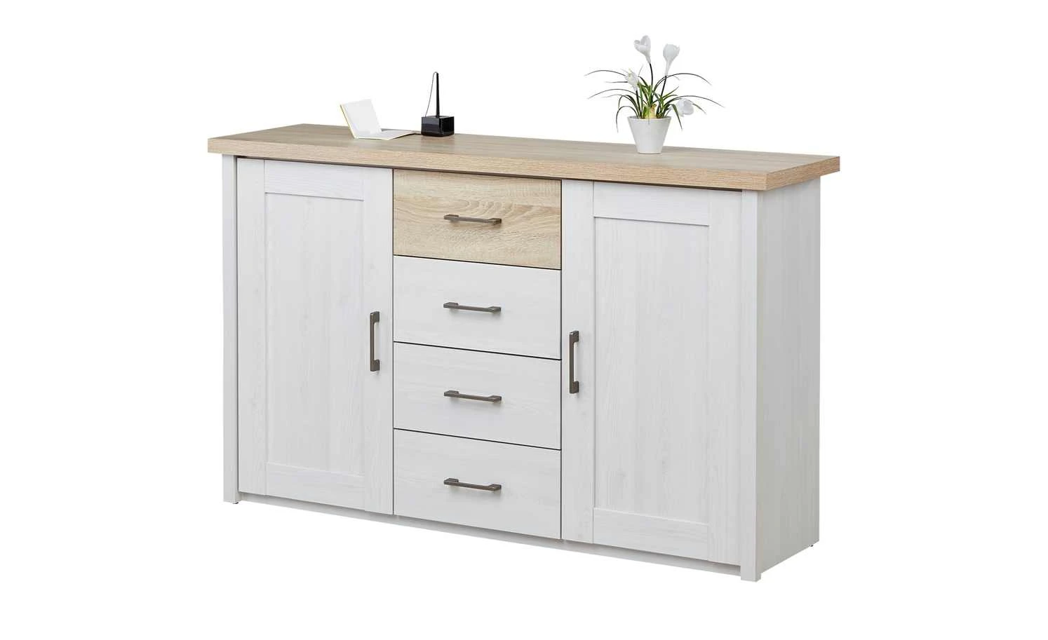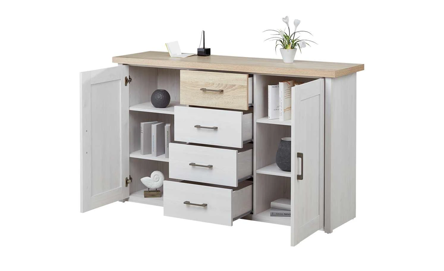 - Farbe / Dekor: Weiß/ Absetzung Eiche sägerau (Nachbildung)