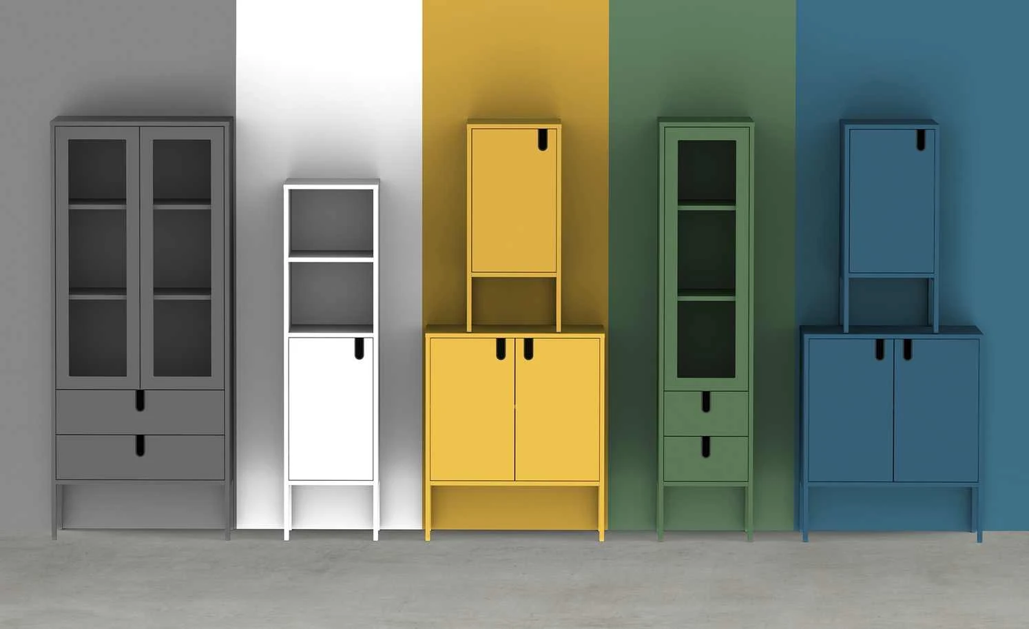 Mit ihrem jungen, frischen Design fällt die Kommode Uno sofort ins Auge. Sie ist mit dem German Design Award Special 2019 ausgezeichnet worden. Die Oberflächen sind senfgelb lackiert. Das matte Finish lässt den Farbton noch edler und moderner wirken. Uno verfügt über zwei Fächer, die von einer Tür verschlossen werden. Letztere ist mit einer Soft-Close-Funktion ausgestattet, die für ein leises Schließen sorgt.