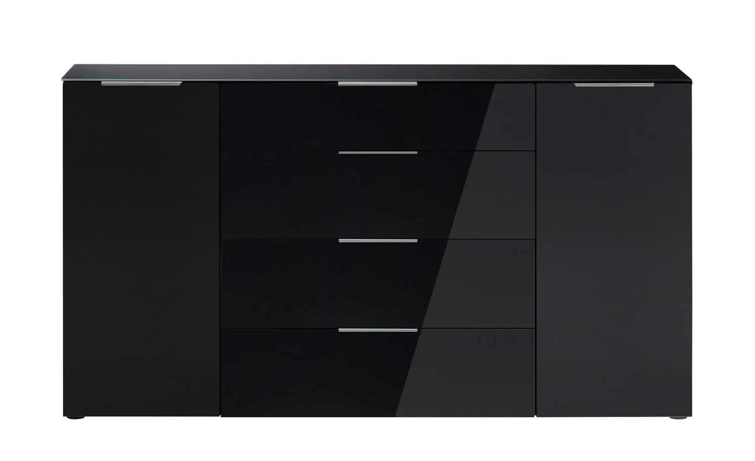 Mit ihrem modernen Look und praktischen Nutzen ist die Kommode Vitreo ein Highlight für jeden Raum. Die geradlinige Linienführung wird mit einem coolen Anthrazit kombiniert. Die Front hat eine Oberfläche aus ESG-Sicherheitsglas. Es ist besonders hart und widerstandsfähig – und gibt der Front ein glänzendes Finish. Zusätzliche Akzente werden durch die verchromten Griffleisten gesetzt. Der Korpus der Kommode hat eine natürliche Holzoptik. Er ist melaminbeschichtet und somit kratzerunempfindlich und leicht zu pflegen. Vitreo ist mit vier großen Schubladen ausgestattet, die übereinander angeordnet sind. Links und rechts davon befindet sich jeweils eine Tür mit drei Fächern dahinter. Alle vier Schubkästen und die beiden Türen haben einen integrierten Dämpfer für leises Schließen.