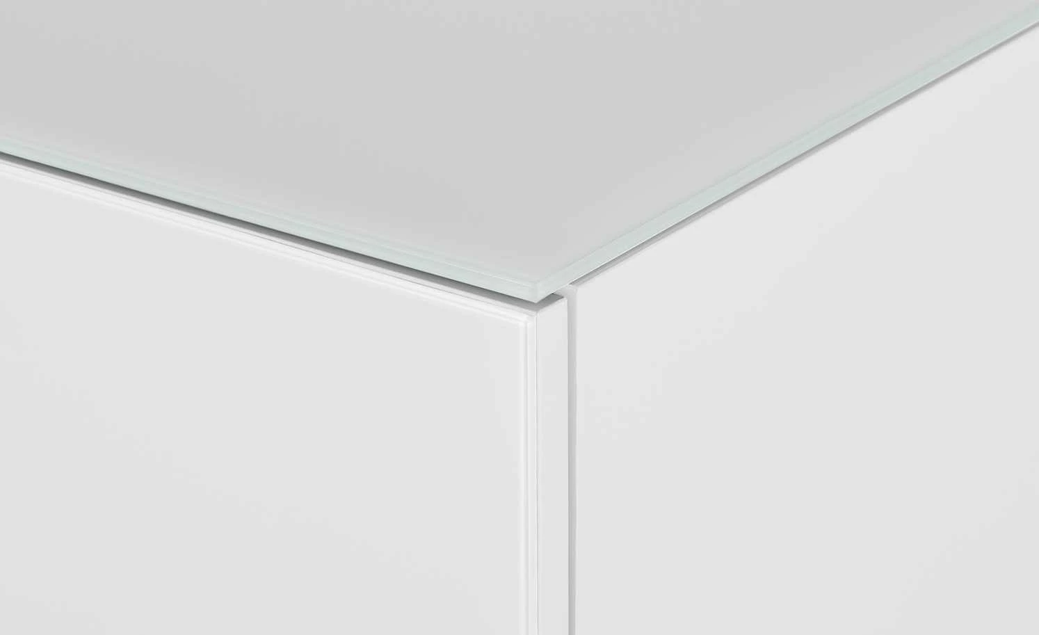 - Mehr zum Material: Korpus und Front mit lackiertem ESG-Sicherheitsglas