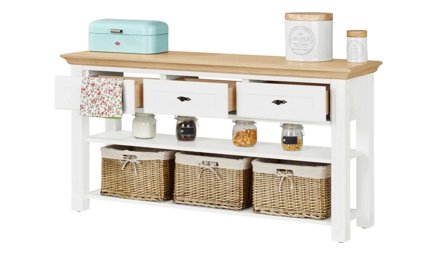 maison bleue Anrichte Petit Chalet | Weiß / Asteiche mit Flechtkörben