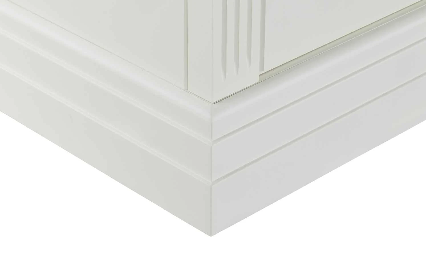 - Mehr zum Material: Korpus und Front aus nordischer Polarkiefer massiv in Reinweiß lackiert, Oberplatte aus Wildeiche natur massiv geölt
