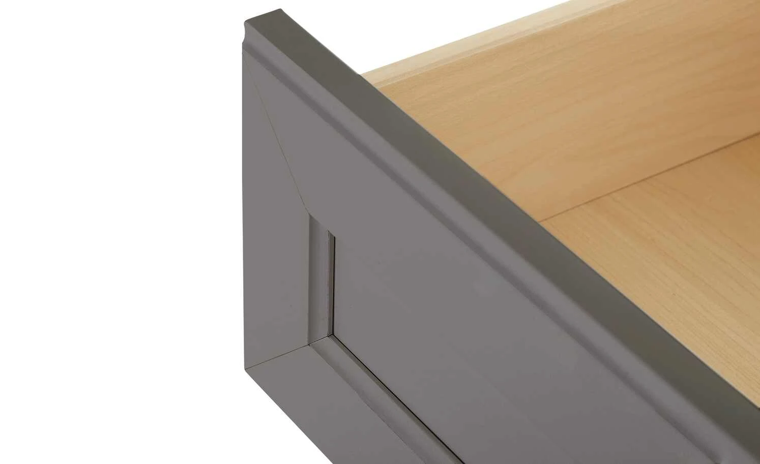 - Mehr zum Material: Korpus und Front aus Holzwerkstoff Graphit lackiert, Absetzung aus Asteiche furniert