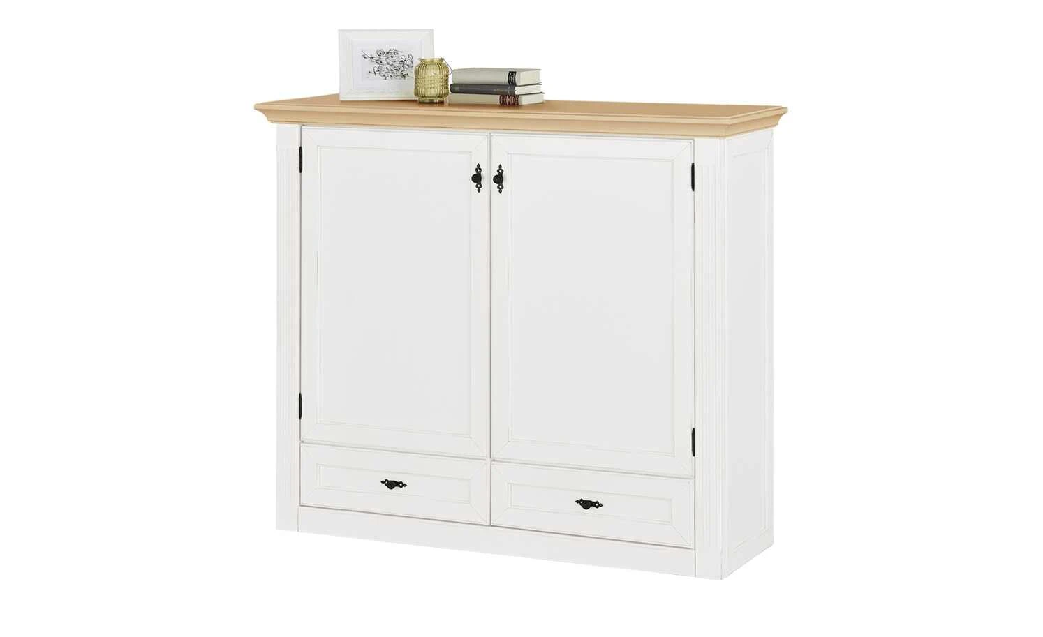 Im TV-Schrank Petit Chalet können Sie problemlos Ihren Fernseher verstauen. Dieser findet im großen Fach hinter den beiden Türen seinen Platz. Unterhalb des großen Faches finden Sie zwei kleinere Fächer. Sie eigenen sich optimal für DVD-Player oder Festplattenrecorder. Zusätzlich hat Petit Chalet zwei Schubladen, in denen Sie die verschiedensten Kleinigkeiten verstauen können.