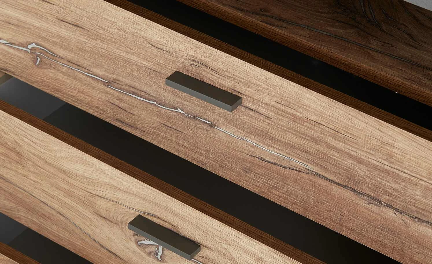 - Holzart / Dekor Front: Eiche (Nachbildung)