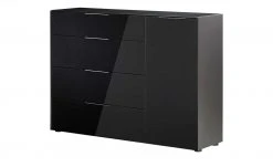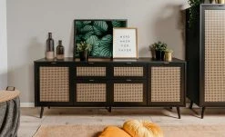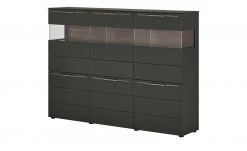 Fotoalben, Geschirr, Wolle – was auch immer Sie verstauen wollen, im Sideboard Laurito ist Platz dafür. Es verfügt über insgesamt sechs Fächer, die durch Türen geschlossen werden können. Die Einlegeböden sind in der Höhe verstellbar. Mittig sind zudem vier Schubladen übereinander angeordnet. Laurito hat eine Beschichtung aus Melaminharz. Sie macht die Oberflächen relativ unempfindlich und leicht zu pflegen.