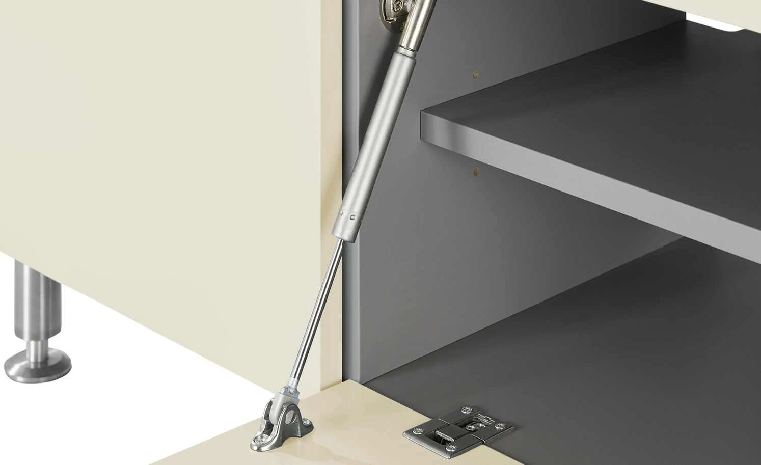 - Mehr zum Material: Korpus innen sowie Inneneinteilung: hochwertiger Schichtstoff auf Trägerplatte, grau, Oberflächenfinish Korpus und Front: seidenmatt