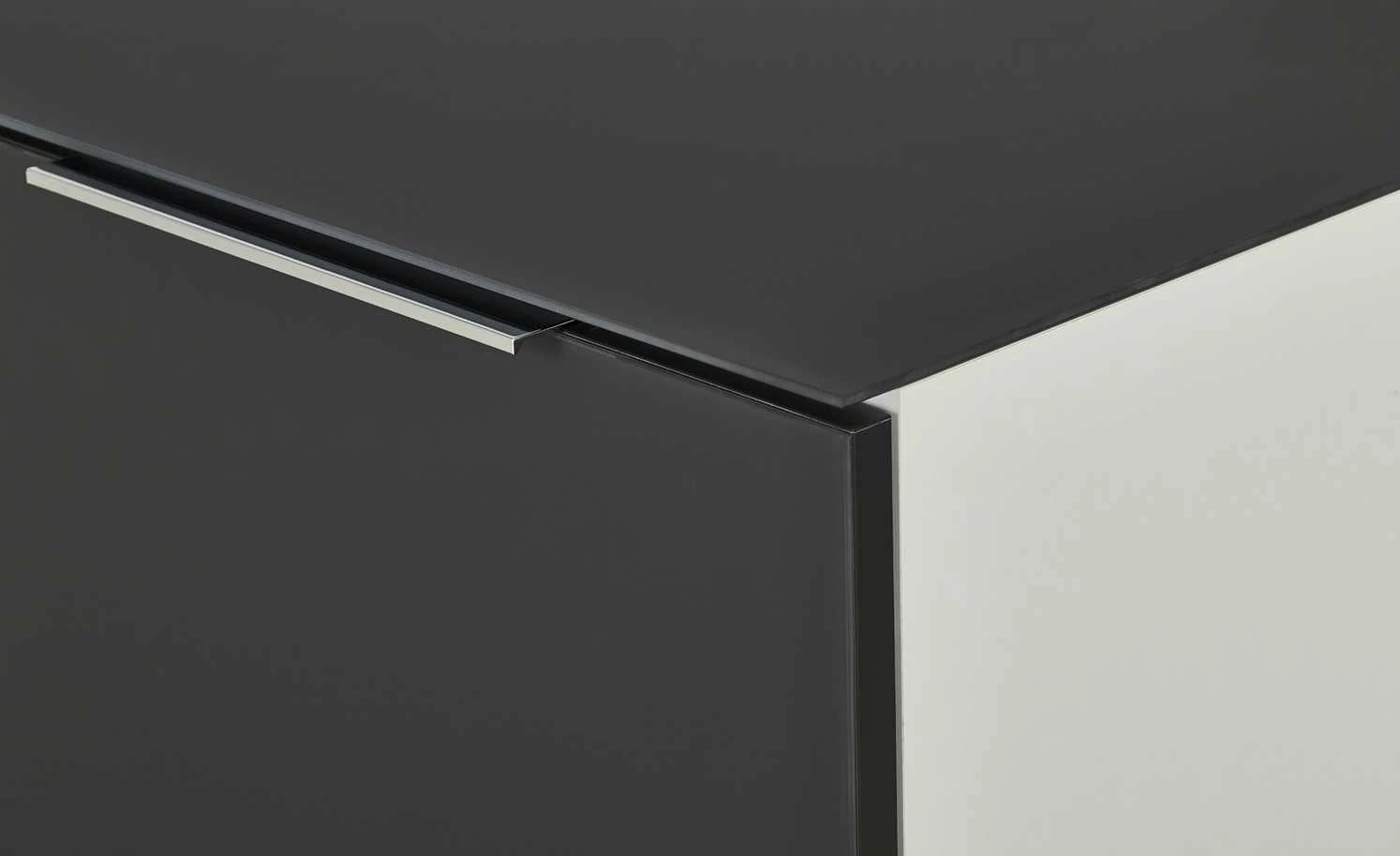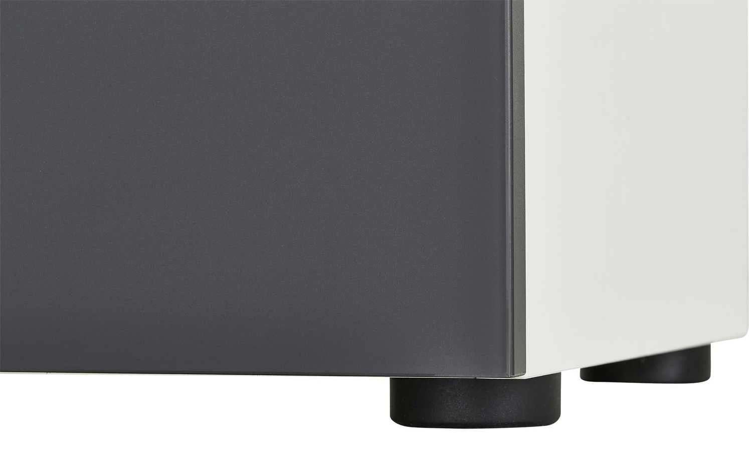 - Mehr zum Material: Material Oberplatte: Glas, ESG – Sicherheitsglas (mit erhöhter Stoß- und Schlagfestigkeit), Korpus Oberfläche mit kratzfester Melaminharzbeschichtung