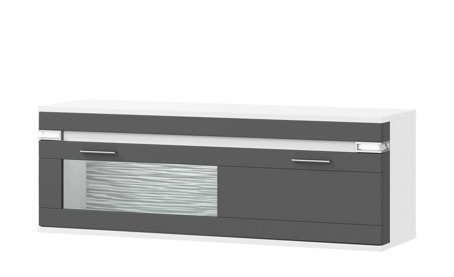 Wie der Name schon verrät, wird die Hängevitrine Katt an die Wand gehängt. Dort bietet sie Platz hinter einer Klappe. Ein Teil der Klappe ist mit Klarglas abgesetzt. Dahinter können Sie Lieblingsstücke präsentieren. Durch die abgesetzte Rückwand kommt der Inhalt des Faches schön zur Geltung. Die Hochglanz-Front von Katt wird durch die seitliche Frontbeleuchtung akzentuiert.