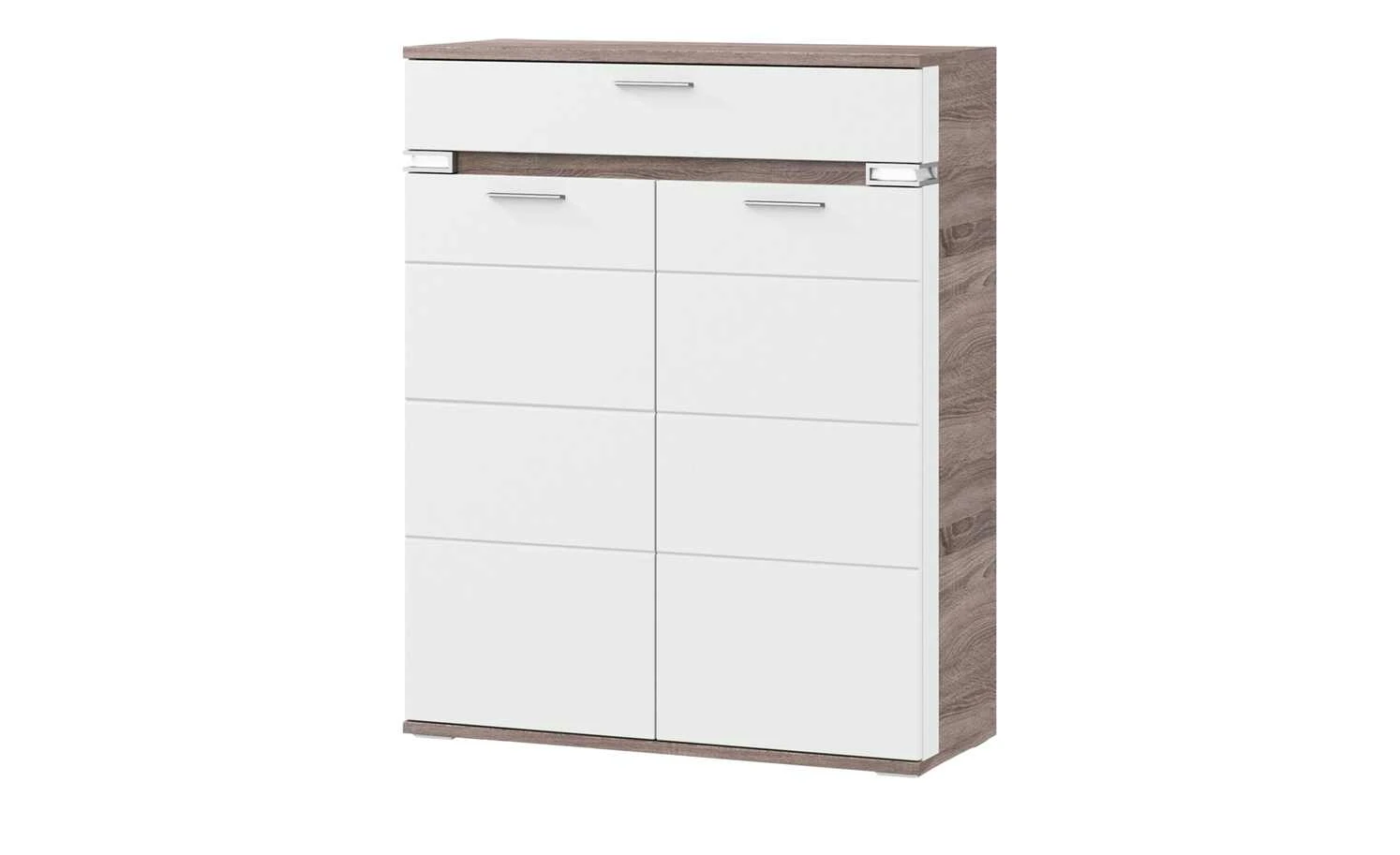 Vom Fotoalbum, über das Kaffeeservice bis hin zum Gesellschaftsspiel können Sie alles im Highboard Katt von uno unterbringen. Platz befindet sich im großen Schubfach und hinter den beiden Türen. Vier Böden unterteilen den Stauraum innen. Der Schubkasten ist mit einem Selbsteinzug und Soft-Close ausgestattet. Er schließt sanft und leise. Die weiße hochglänzende Front wird durch die seitliche LED-Beleuchtung akzentuiert. Sie ist im Lieferumfang enthalten.