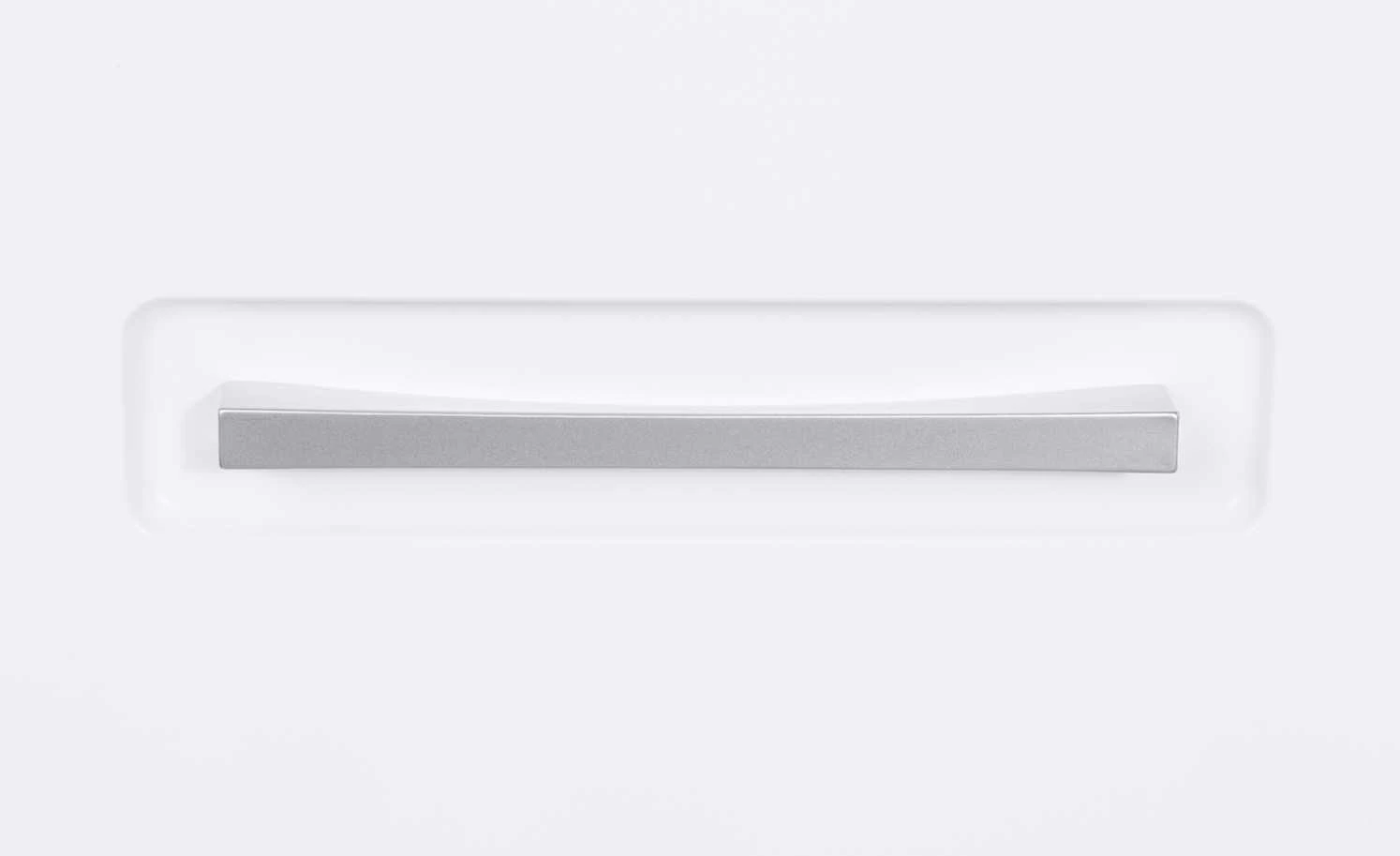 - Mehr zum Material: Korpus mit edelstahlfarbigem Metallrahmen, Rückwand hinter dem Glaseinsatz: Grau in 3D Design