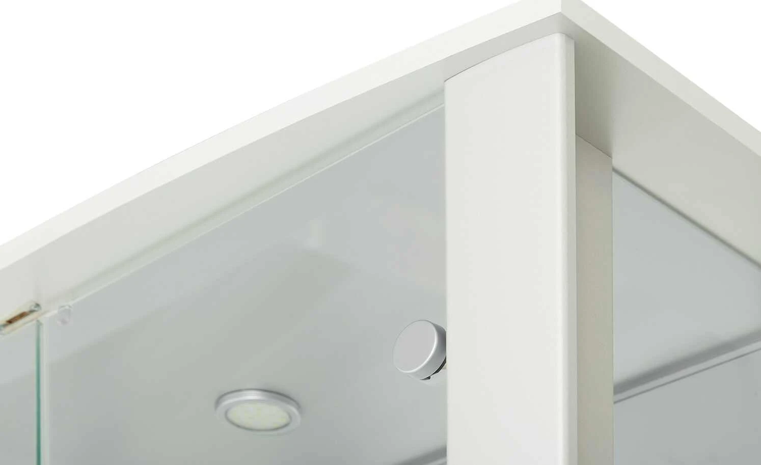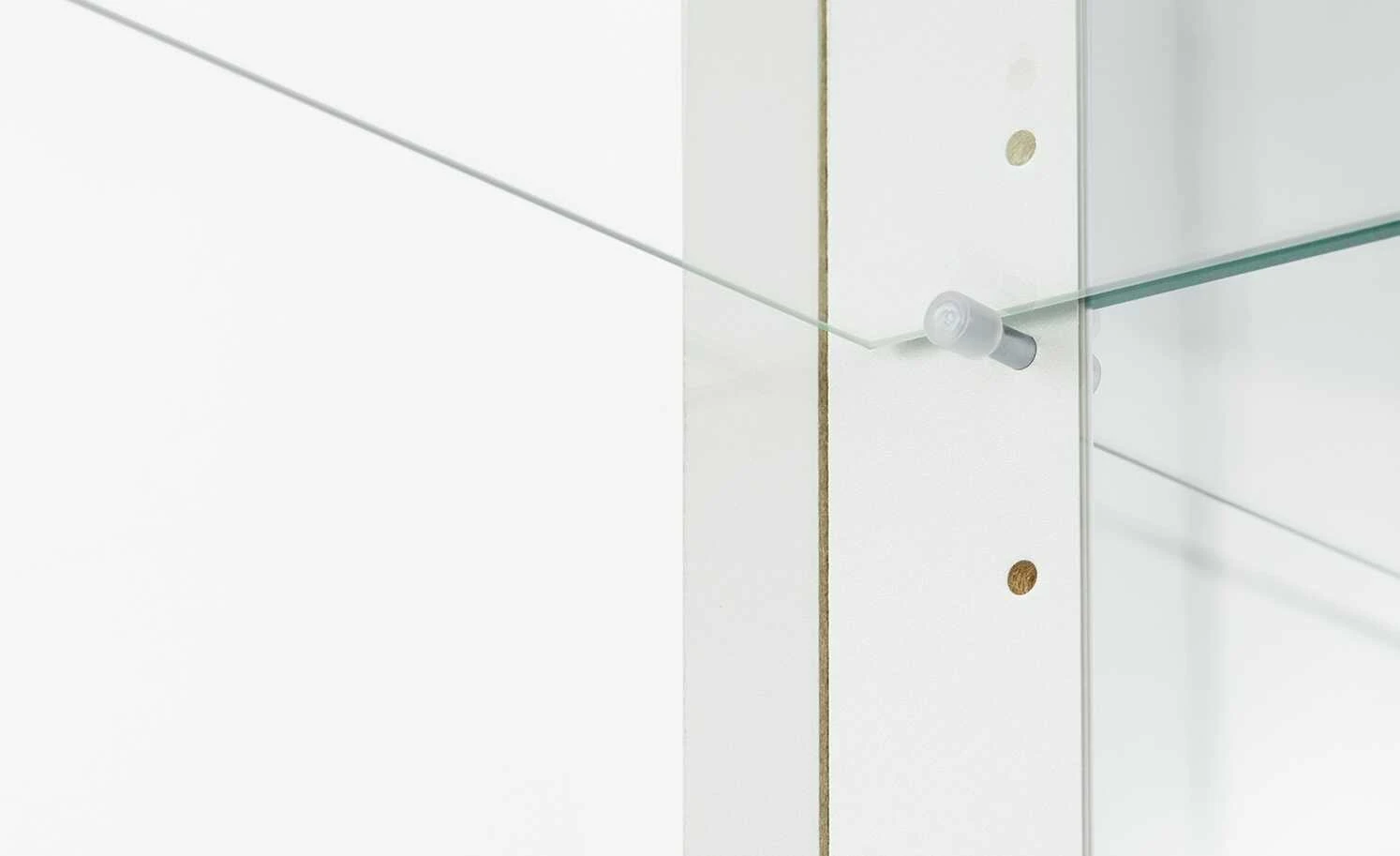 - Mehr zur Ausführung: Belastbar je Einlegeboden: 5kg, inklusive Vitrinenschloss