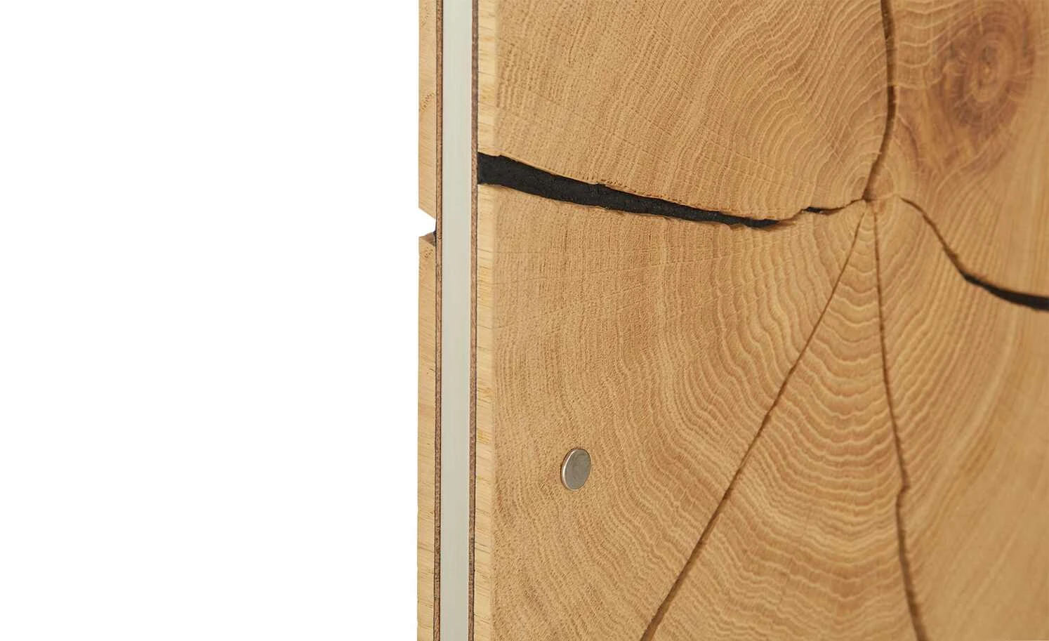 - Mehr zum Material: Korpus aus Kerneiche Umato massiv, gebürstet, Front aus Mattglas