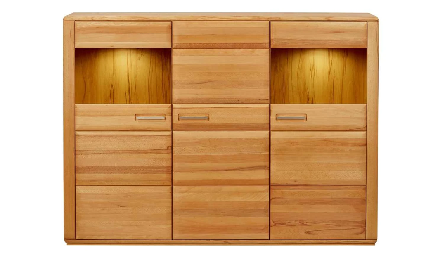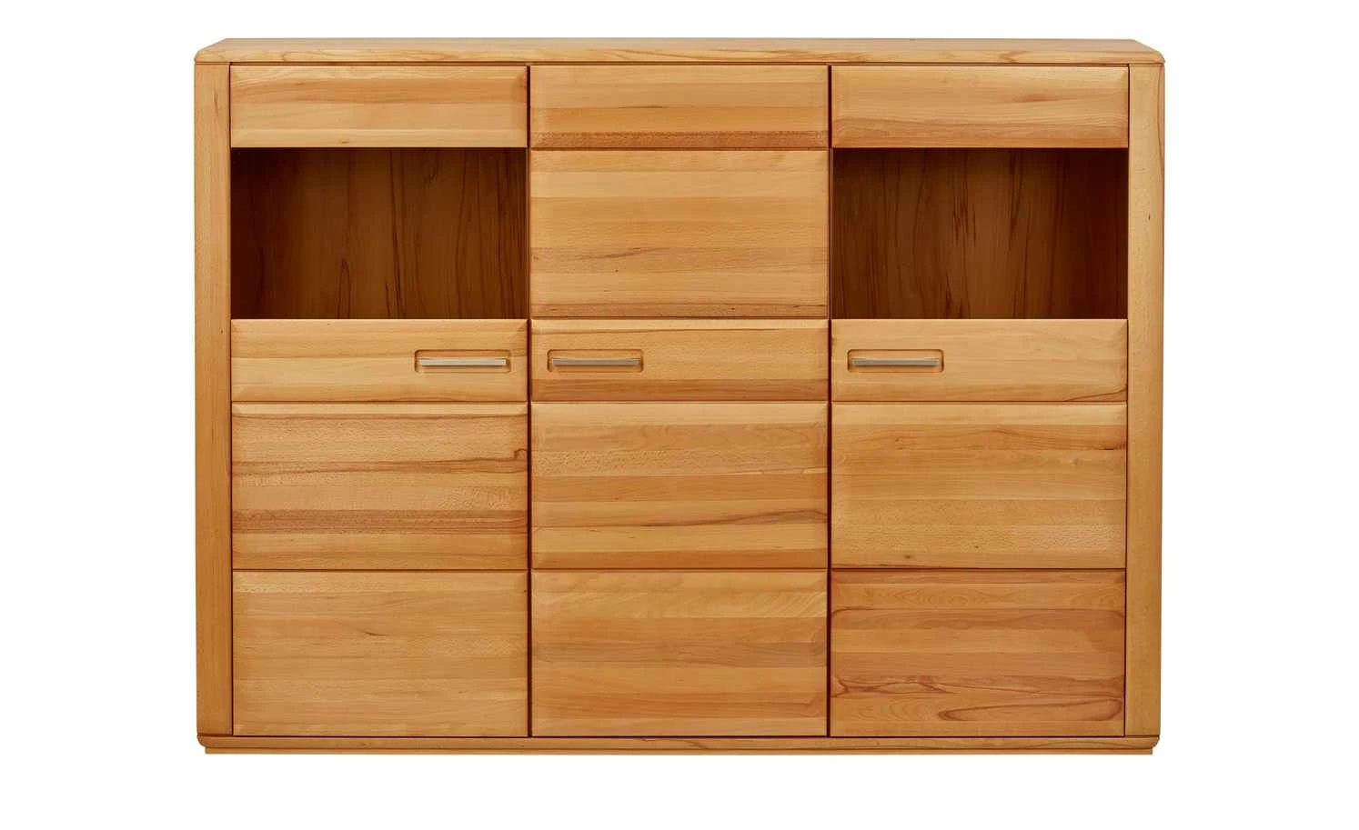 Durch die Unterteilung des Stauraums im Inneren ist das Highboard Dio besonders praktisch. So können Sie all die Dinge, die Sie aufbewahren möchten, ordentlich sortieren. Dank der drei Türen ist der Inhalt der Fächer vor Staub geschützt. Die beiden äußeren Türen sind mit bräunlichem Parsolglas abgesetzt. Durch dieses haben Sie einen freien Blick in den Inhalt der dahinter liegenden Fächer. Ideal um dort Lieblingsdeko oder hübsches Geschirr zu platzieren. Die Türen sind alle aus massivem Holz. Der Korpus ist hingegen mit einem hochwertigen Furnier versehen worden.