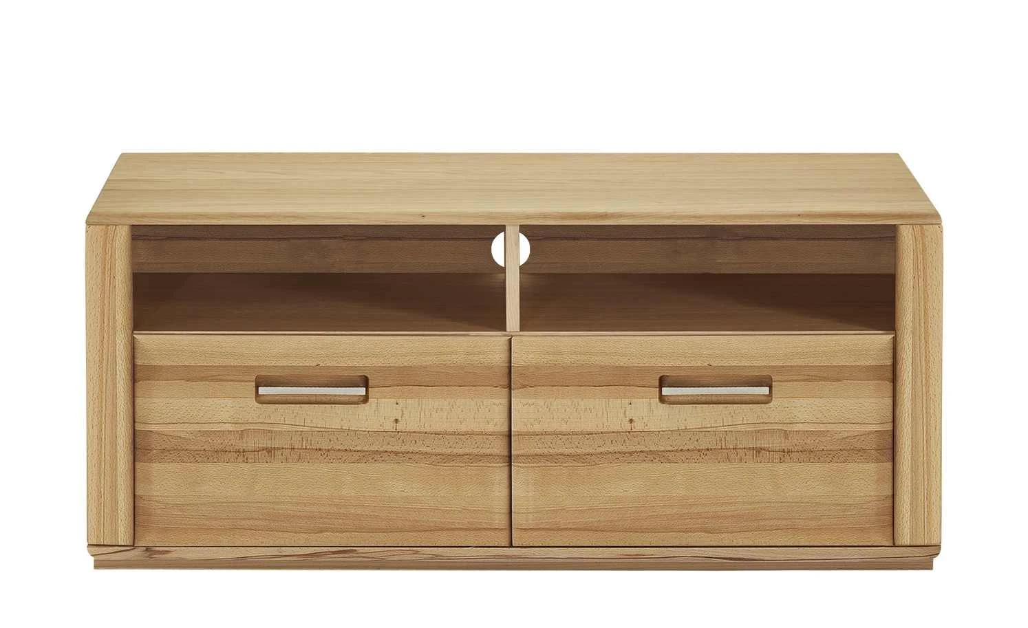 Fernseher, Blu-Ray-Player und Festplattenrecorder sind auf und im TV-Element Dio gut aufgehoben. Die beiden offenen Gerätefächer sind mit Kabelöffnungen in der Rückwand ausgestattet. Direkt unter den offenen Fächern ist Dio außerdem mit zwei Schubladen ausgestattet. Während der Korpus hochwertig furniert ist, besteht die Front aus edlem Massivholz. Die Oberfläche ist zum Schutz des Holzes geölt worden.